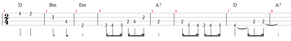 Dica valiosa: o solo deve dialogar com os acordes da harmonia. A beleza do solo está na relação entre melodia e harmonia, e não apenas no uso indiscriminado de escalas. Grave a base dos acordes (Ré, Si menor, Mi menor e Lá7) e crie seus próprios solos sobre ela. Cante, solfeje e deixe o ouvido guiar sua criatividade!