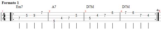 Para os nossos exercícios vamos usar o IIm, V7, I do campo harmônico de D, os acordes seriam: Em7, A7, D7M.