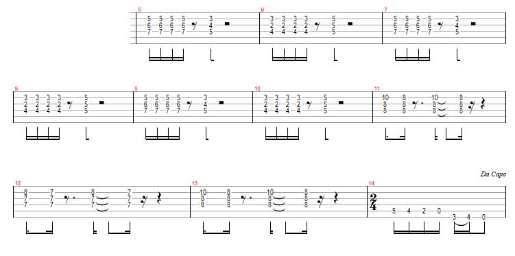O Solo da guitarra foi baseado no estilo de Jimmy Page, na sua fase do Led IV.