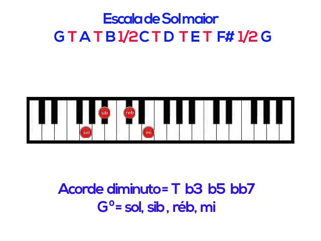 O Acorde diminuto é formado pela tônica, terça menor, quinta menor e sétima diminuta.