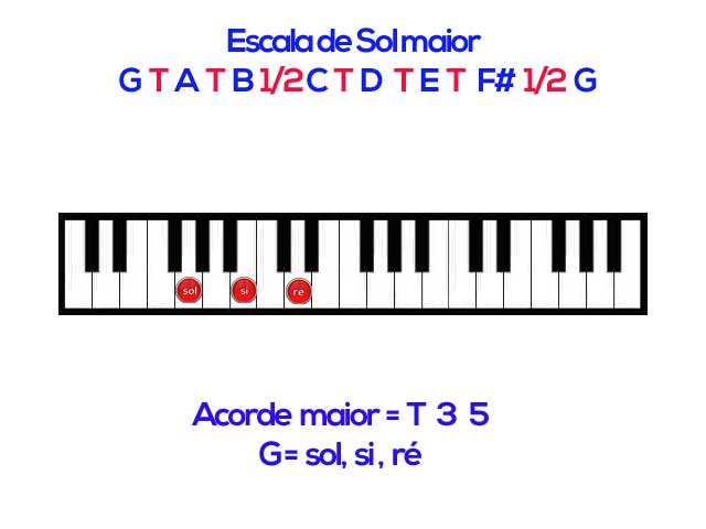 O Acorde maior é formado pela Tônica, terça maior e quinta justa.