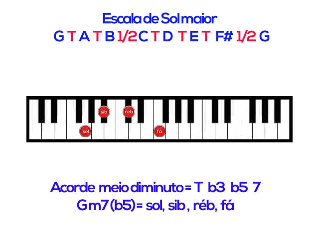 O Acorde meio diminuto é formado pela tônica, terça menor, quinta menor e sétima menor.