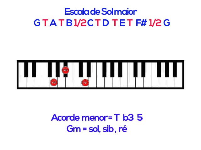 O Acorde menor é formado pela Tônica, terça menor e quinta justa.