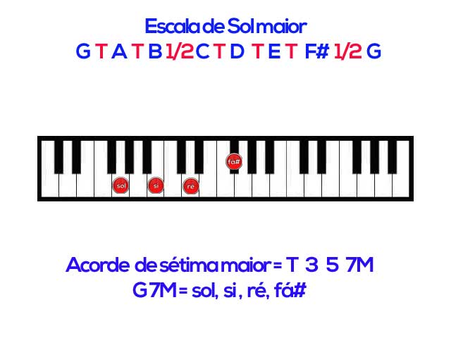 O Acorde sétima maior é formado pela tônica, terça maior, quinta justa e sétima maior.