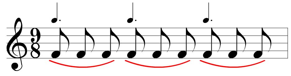 - Como cada unidade de tempo é feita de três notas, a métrica é composta.